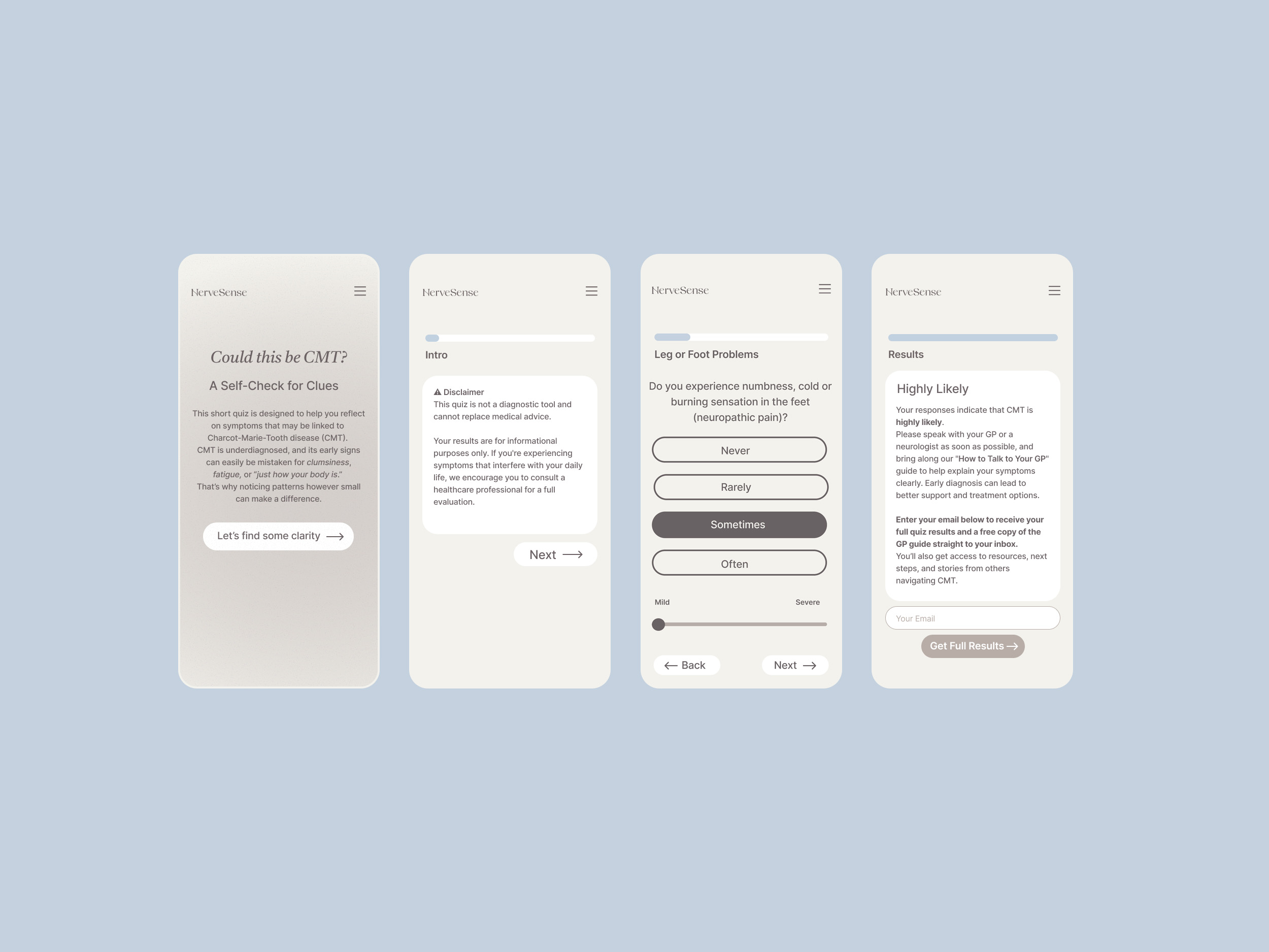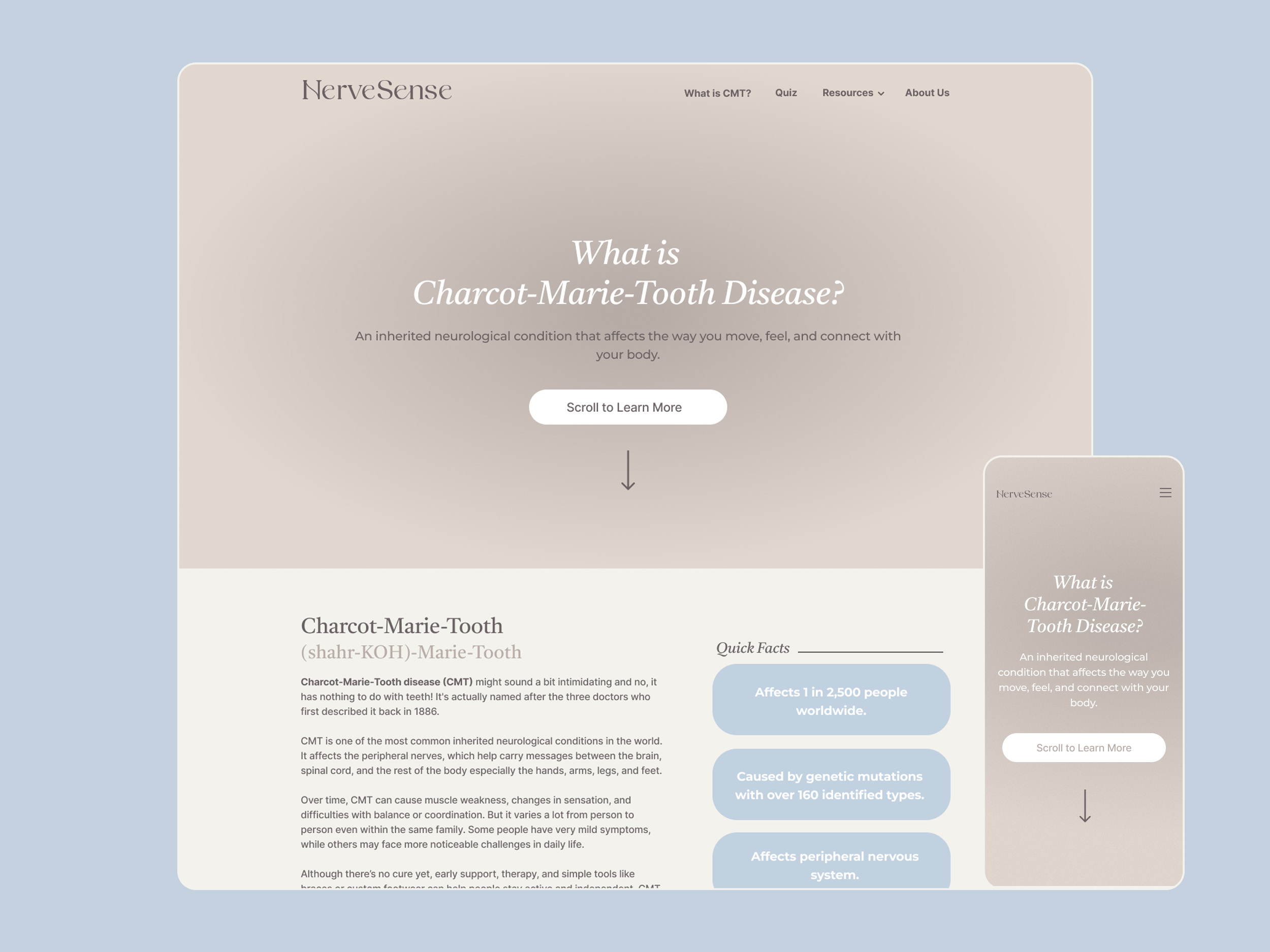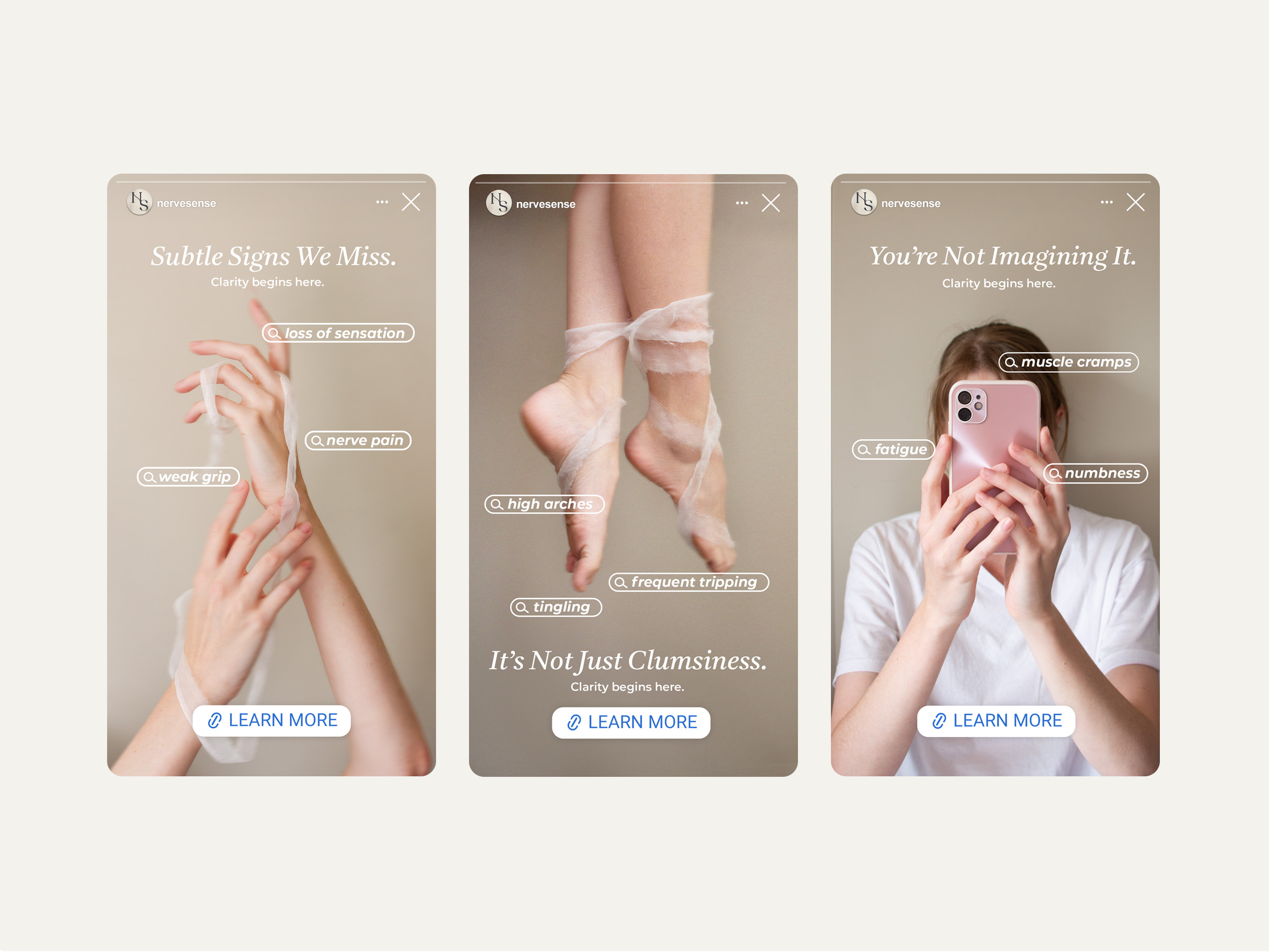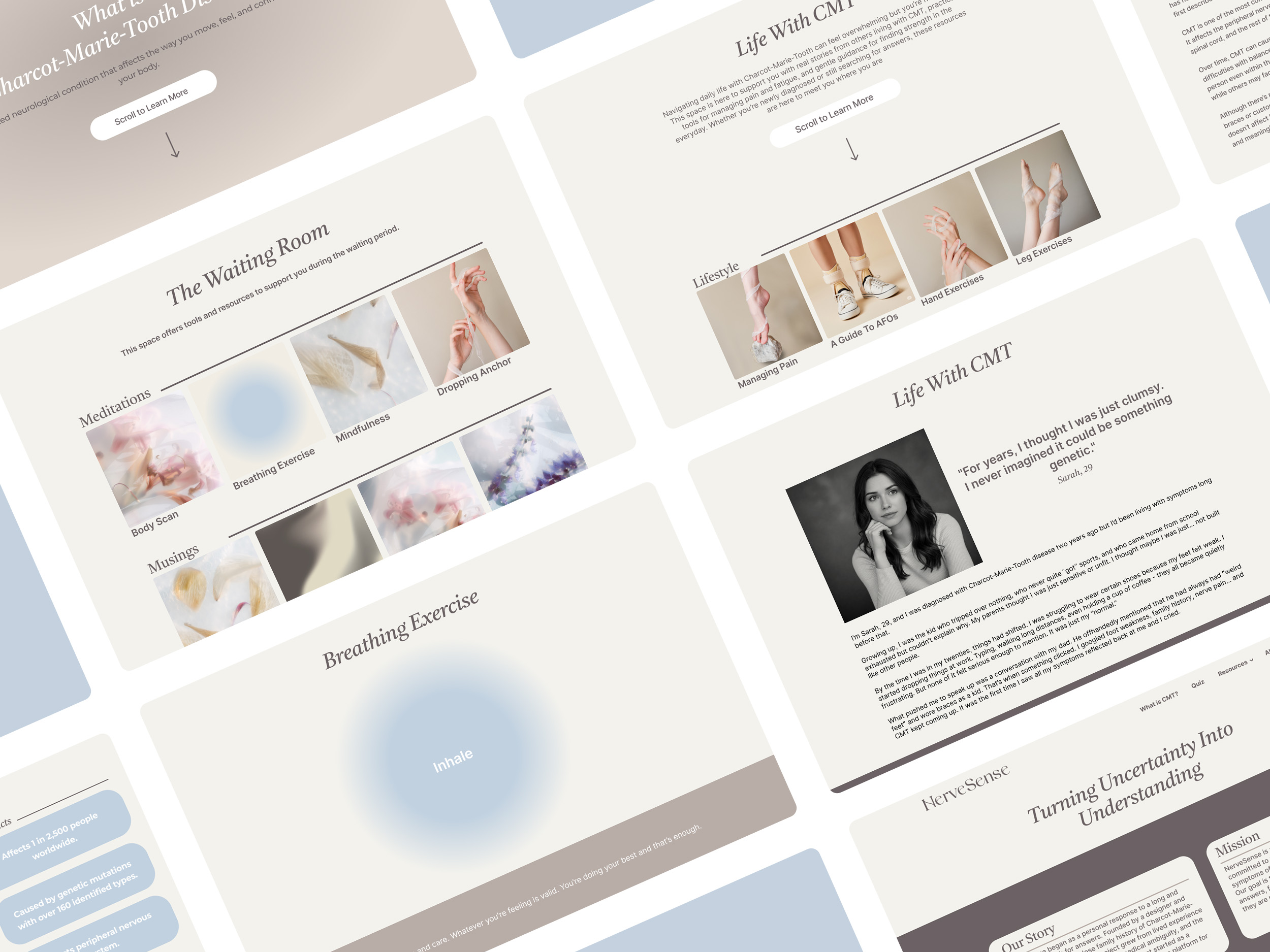 NerveSense is a visual awareness project exploring the emotional and diagnostic journey of Charcot-Marie-Tooth (CMT) disease – a hereditary neurological condition that often goes undiagnosed for years. Rooted in personal experience, the project blends photography, design, and storytelling to illuminate the symptoms of CMT and the uncertainty of seeking answers. Through soft visuals, layered metaphors, and educational elements, NerveSense creates space for empathy, clarity, and connection for those navigating hidden health challenges.